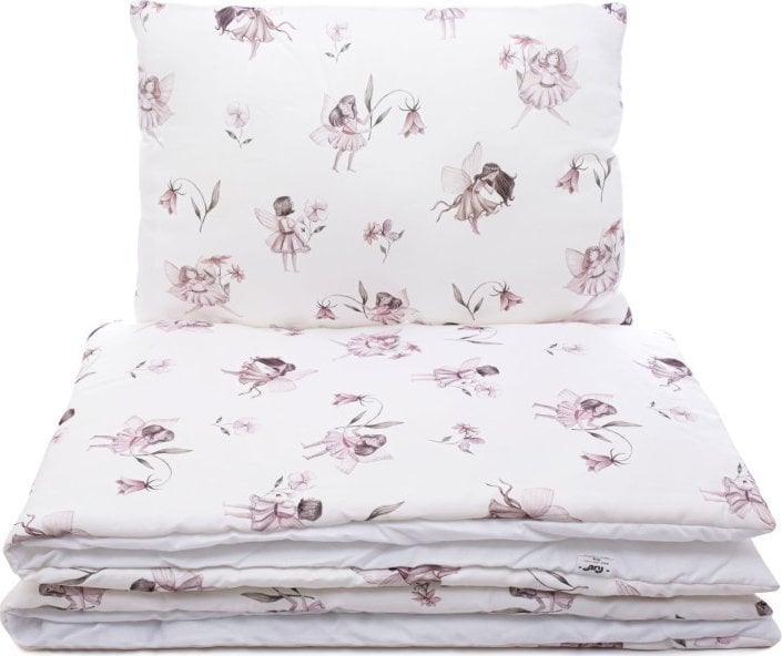 Antklodė 100 cm x 135 cm ir pagalvė 40 cm x 60 cm. Pagalvė aukštesnė, pritaikyta vyresniam vaikui. Šio dydžio antklodė tiks ir trejų, ir penkerių metų vaikui.