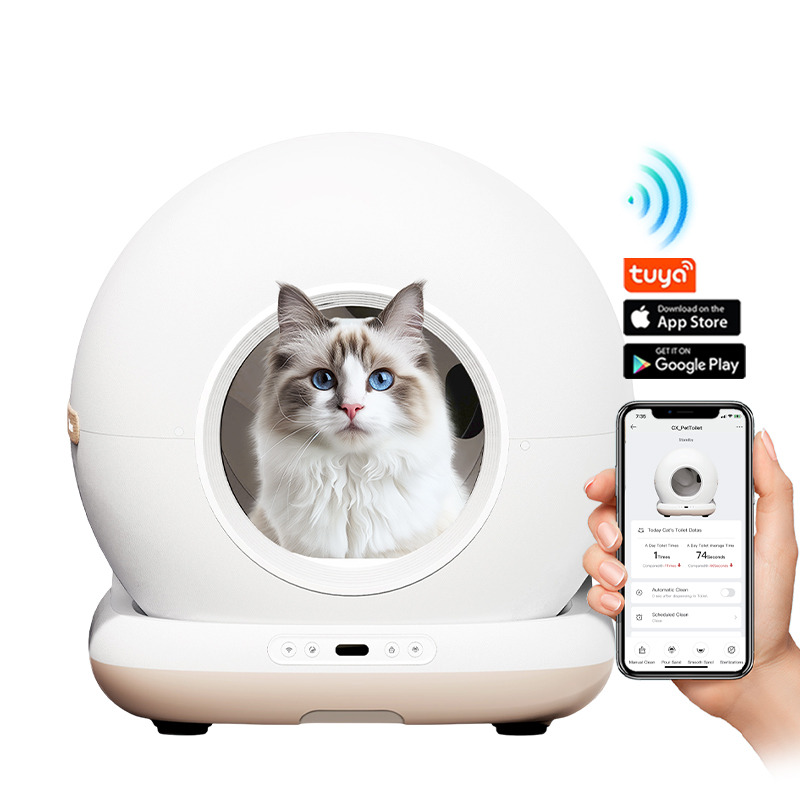 • Valdymas per išmaniąją programėlę: Valdykite tualetą nuotoliniu būdu per patogią programėlę – gaukite pranešimus, kai atliekų talpa prisipildo, ir stebėkite katės elgseną realiuoju laiku.