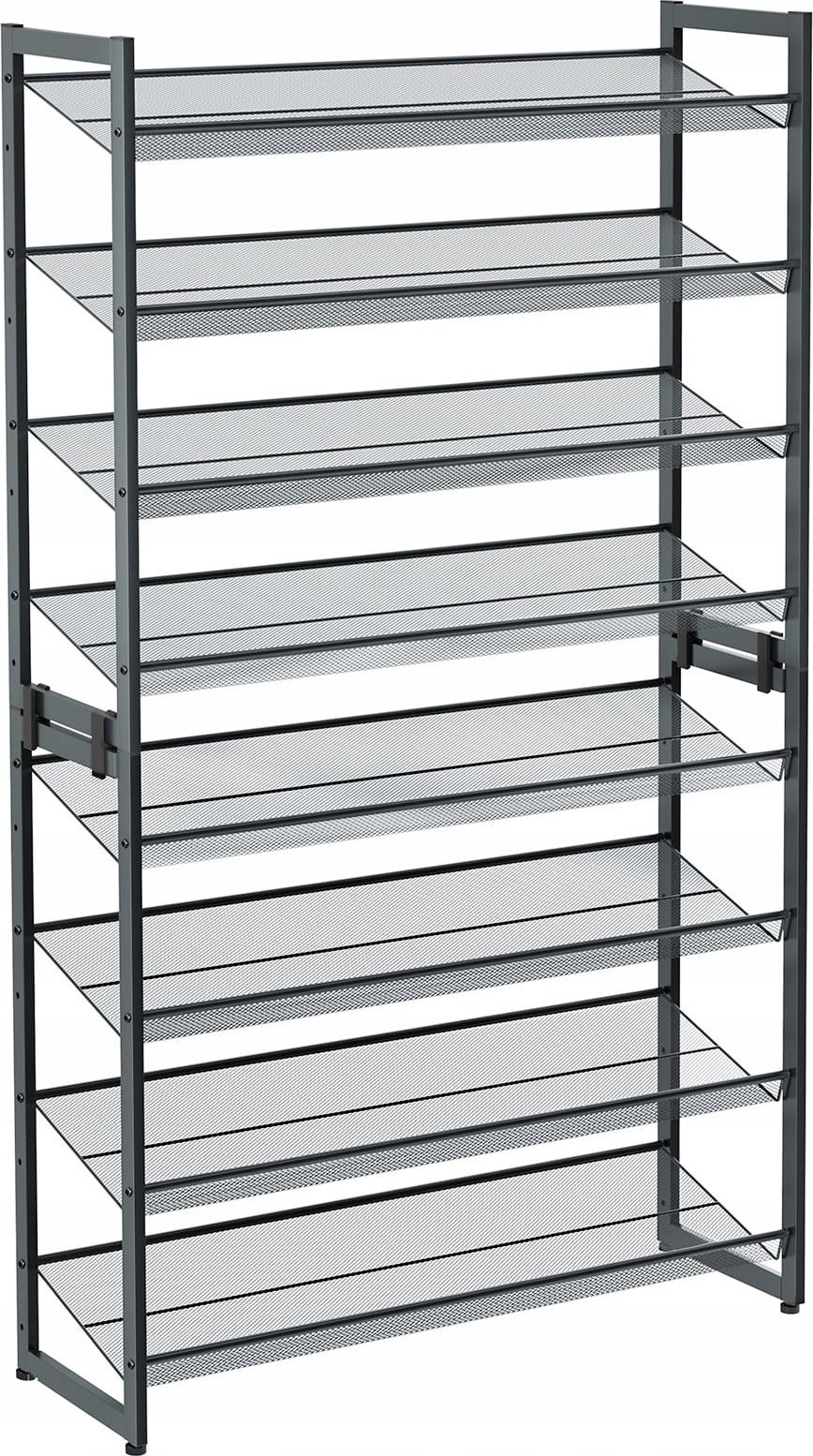Pritaikykite savo įrenginį: sukraukite juos, atskirkite, sumontuokite lentynas plokščiai arba kampu - naudokite šiuos 8 lygius, kad atitiktų jūsų poreikius. Galite padalinti batų lentyną į 2 atskiras 4 lygių sekcijas skirtingiems kambariams arba sujungti jas vieną ant kitos, kad sukurtumėte efektyvų jūsų avalynės pristatymą. Sukurta tiek didelėms, tiek mažoms batams: pripažinkime, dauguma mūsų turi daugiau nei vieną porą batų, o kai kurie iš jų yra gana aukšti. Su 20 cm atstumu tarp lentynų šioje batų lentynoje rasite vietos tiek sportbačiams, tiek aukštakulniams, tiek batams. Stabilumas svarbiausia: stabili batai lentyna gali laikyti 4 poras vyriškų batų arba 5 poras moteriškų batų, maksimalus kiekvienos lentynos apkrovos svoris - iki 10 kg.