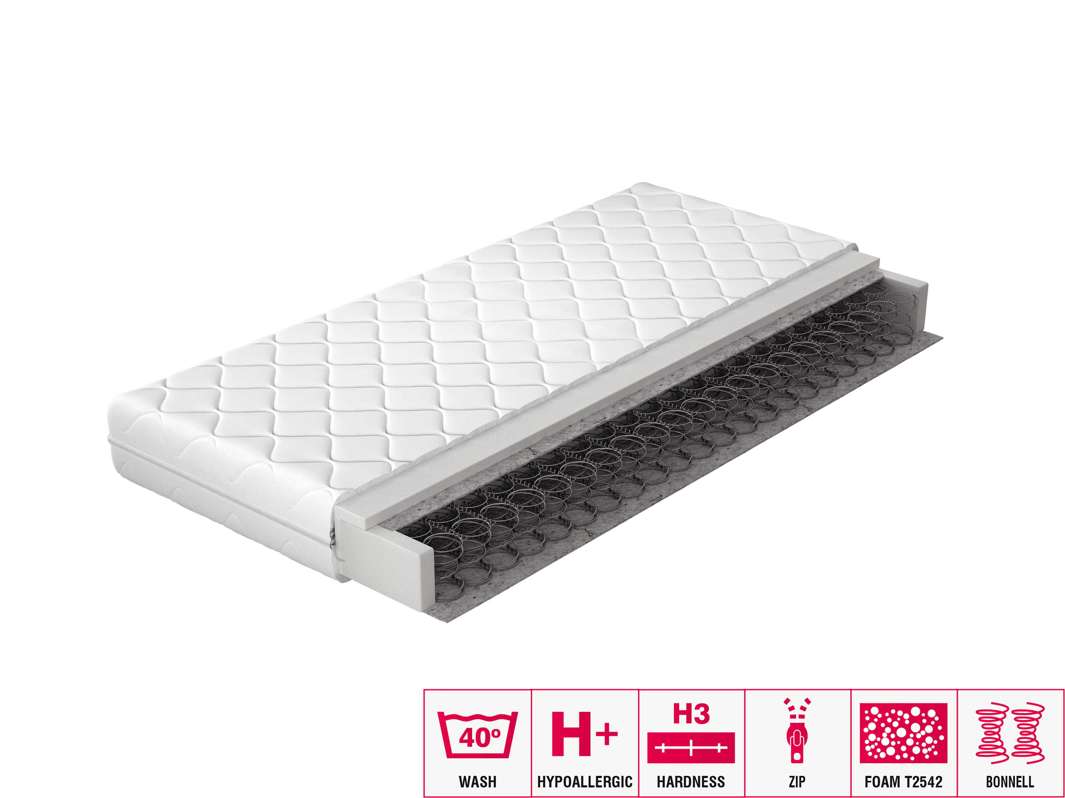 Gerai nakties miego garantija yra tobulai parinktas čiužinys. Mes žinome, kaip svarbus šis pasirinkimas, todėl pristatome jums OMINI bonell čiužinį. Bonell spyruoklė yra garantija, kad čiužinys nedeformuosis naudojimo metu, o tai yra labai svarbu miego komfortui. Bonell spyruoklė yra padengta veltinio pagalvėle, ant kurios papildomai uždėtas T2542 putplastis. Visa tai yra įdėta į nuimamą užvalkalą.