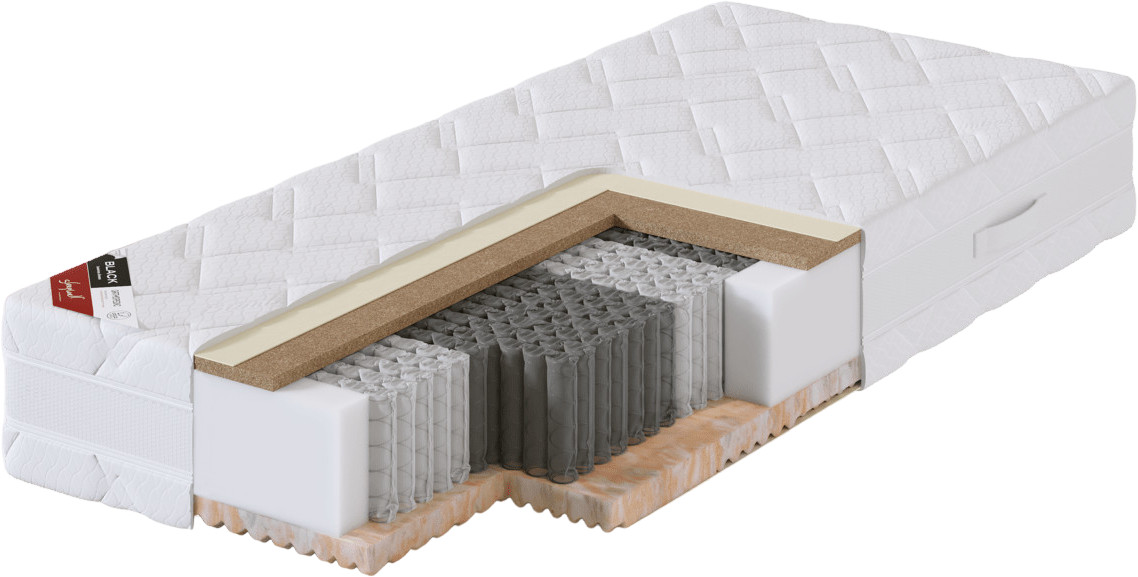 • Spyruoklinį čiužinį taip pat galima užsisakyti su apmušalų audinio kraštais (140–180 dydžių).