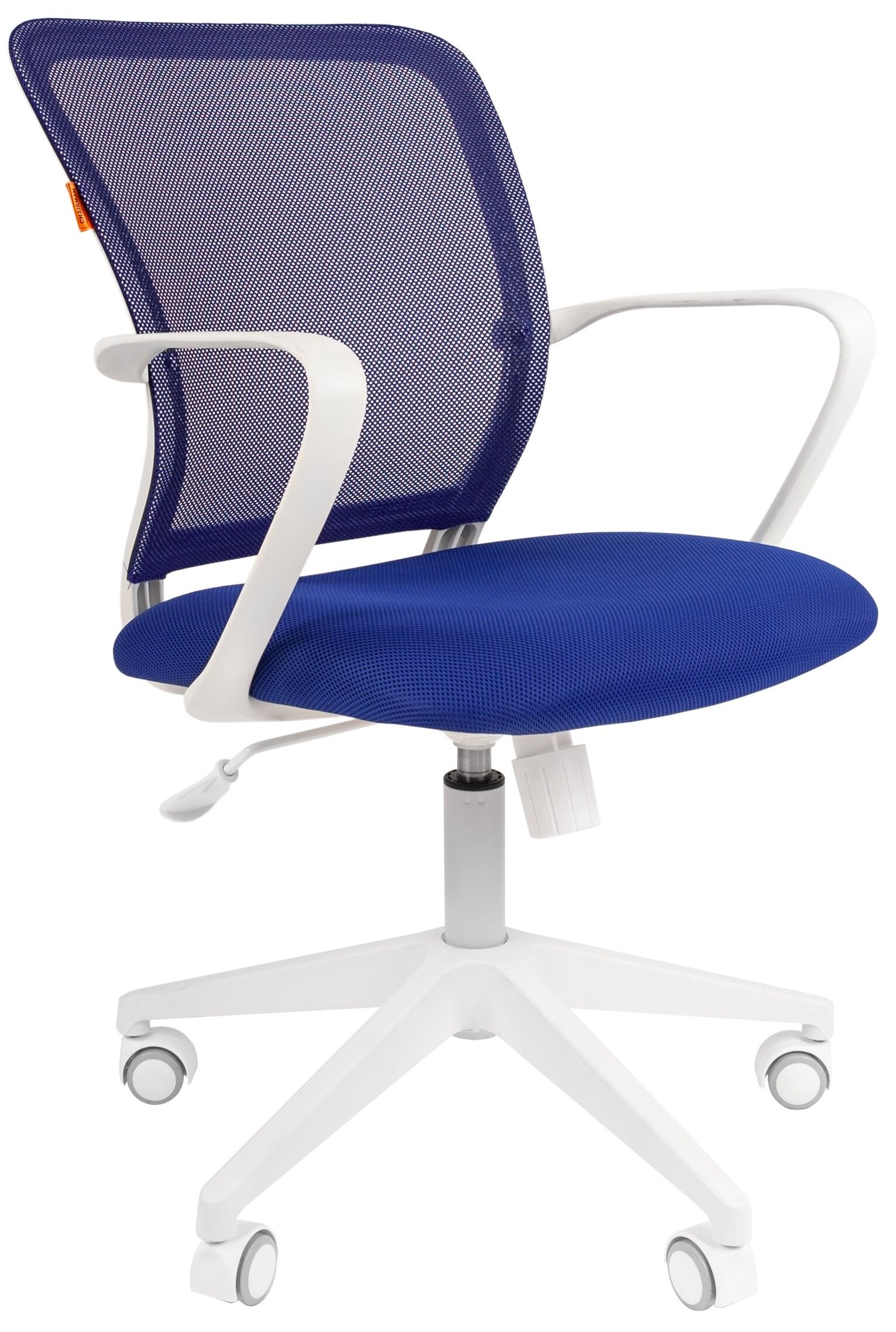 Vaikiška darbo kėdė Leobert Print, 57 x 50 x 81.5 - 93.5 cm, balta/mėlyna