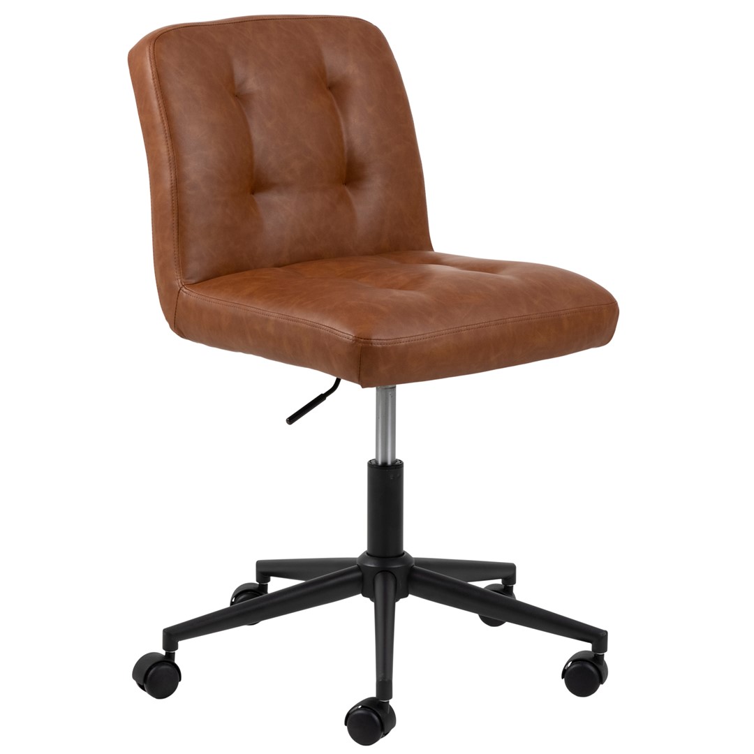 „Cosmo“ rašomojo stalo kėdė – tai moderni biuro kėdė su porankiais, sukurta patogumui ir praktiškumui. Ji pasižymi brendžio PU retro apdaila su kuokšteliais ir 5 žvaigždučių pagrindu, pagamintu iš matinės juodos, grubaus miltelinio plieno.