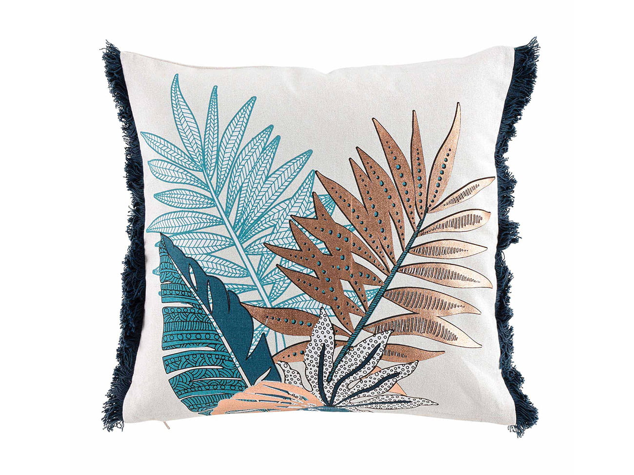The Alianor decorative pillow was inspired by the bohemian trend and inspired by the fashion for tropical accessories. Decorated with a floral print motif, it hides a fanciful soul. The sides of the pillow are finished with navy blue fringes - they give the whole style lightness and harmony.