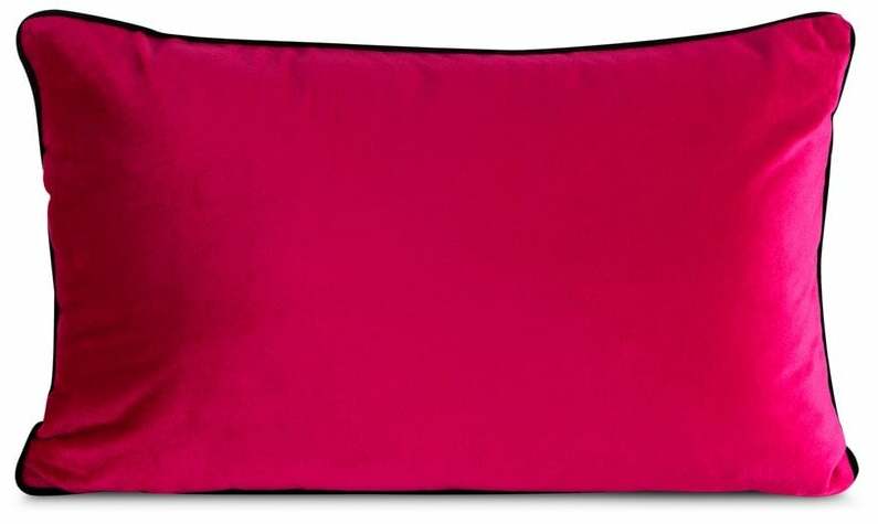 Velvetinė pagalvėlė apsiūta dekoratyvine juostele, plotis: 30 cm, ilgis: 50 cm, spalva: plytų, Gramatūra: 200 GSM, Sudėtis: 100% poliesteris