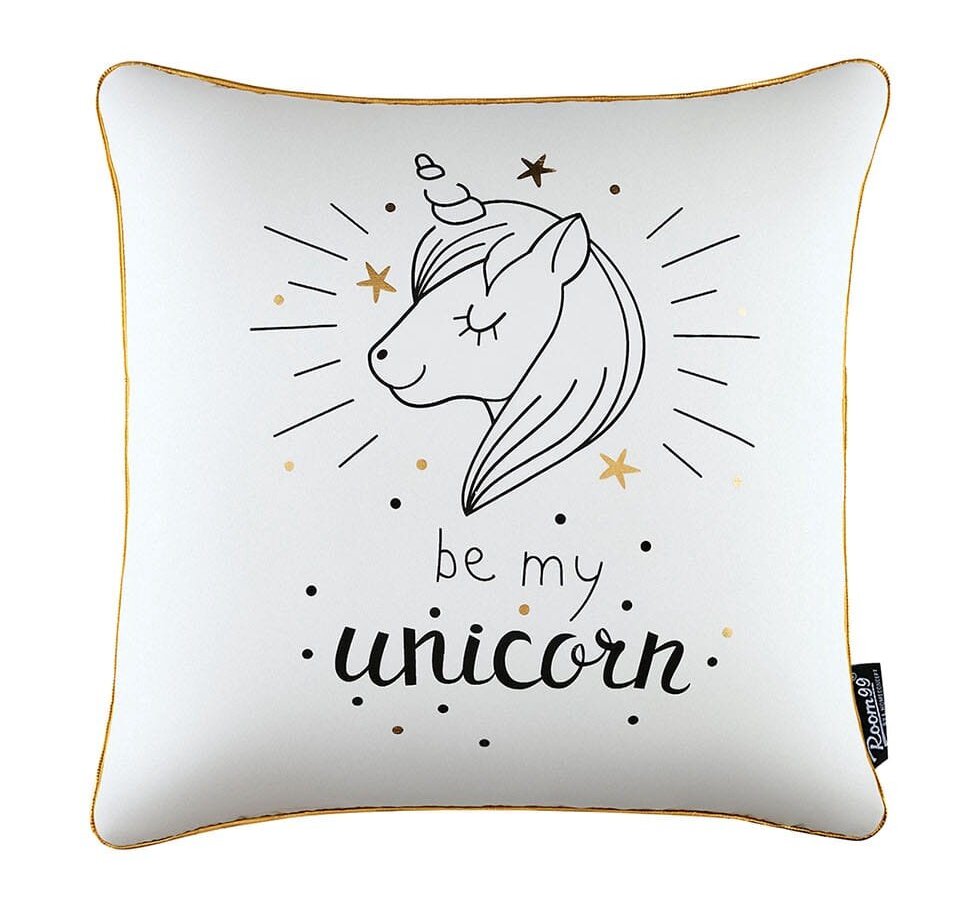 Dekoratyvinės pagalvėlės užvalkalas Room99 Be My Unicorn, aukso/balta, 45 cm x 45 cm | Interjeras, baldai, tekstilė | Senukai.lt | 0