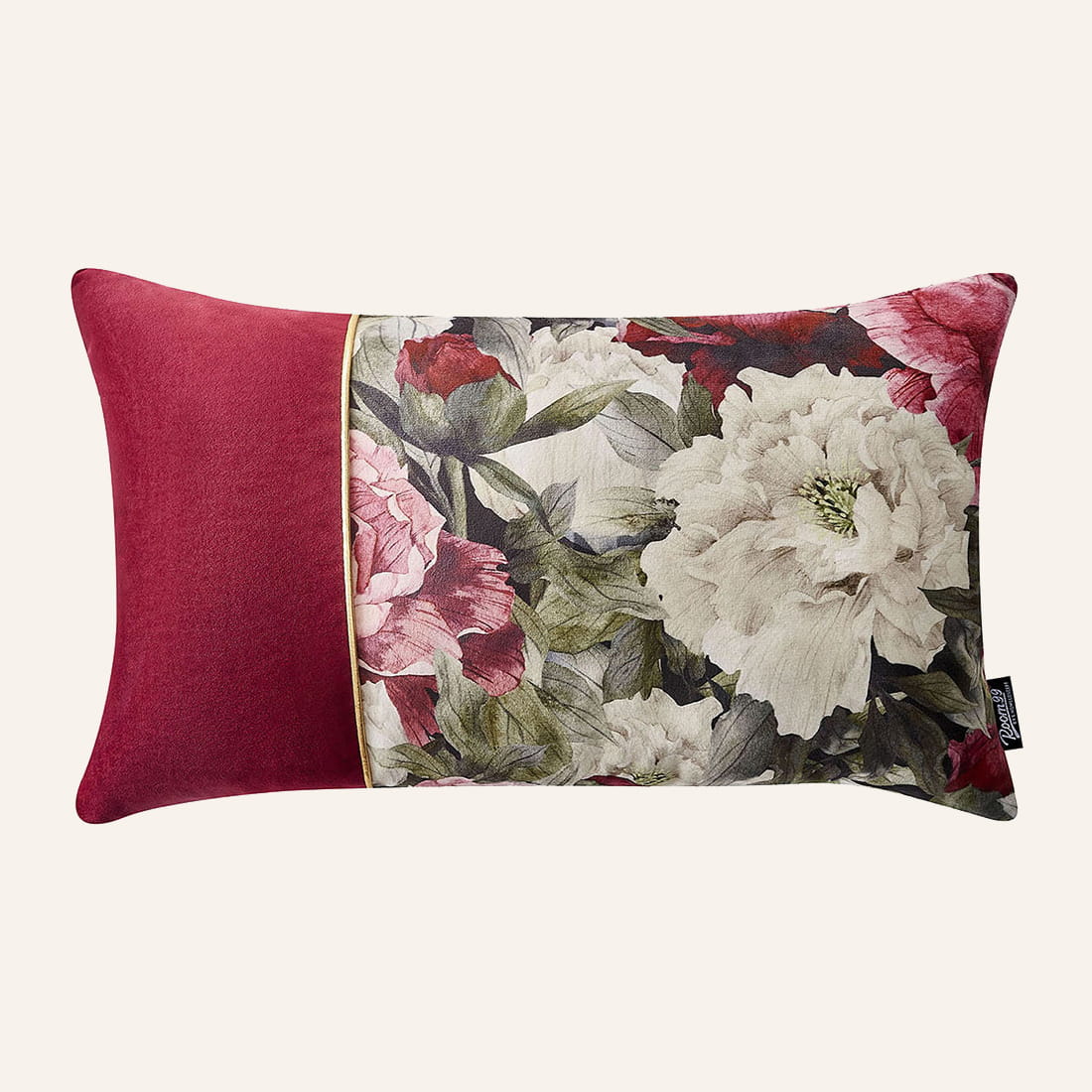 Double-sided pillowcase - front: floral decor visible in the photos, back: smooth, one-color fabric in burgundy