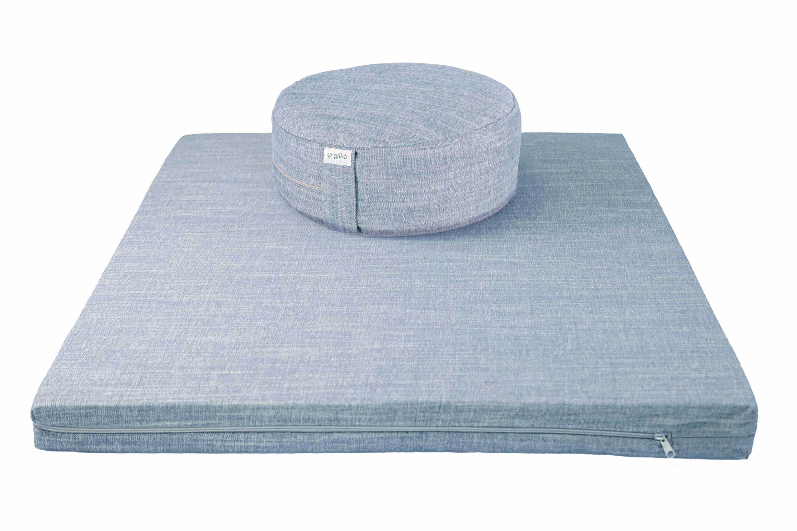 Grikių lukštų pufas ir čiužinukas meditacijai – puikus rinkinys jūsų meditacijoms. Tai jūsų asmeninė erdvė praktikoms. Idealiai tinka ilgesnėms meditacijoms.