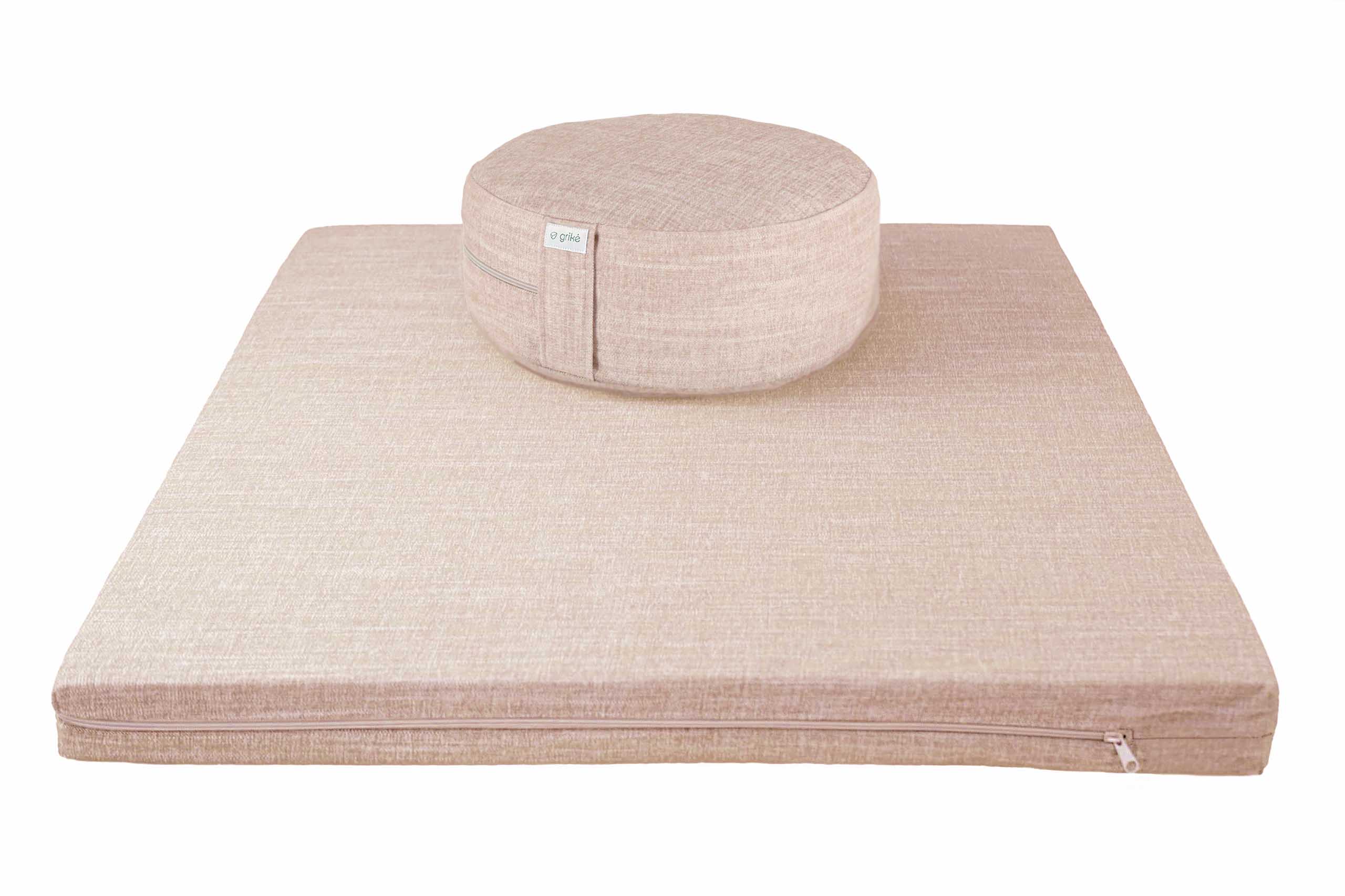 Grikių lukštų pufas ir čiužinukas meditacijai – puikus rinkinys jūsų meditacijoms. Tai jūsų asmeninė erdvė praktikoms. Idealiai tinka ilgesnėms meditacijoms. Pufas prisitaiko prie kūno formų ir užtikrina stabilią sėdimą padėtį. Puikiai praleidžia orą, todėl nesukelia prakaitavimo. Čiužinukas iš medvilnės ir kokybiško porolono.