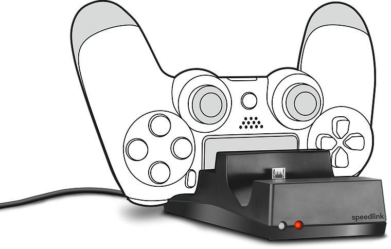 „JAZZ“ USB dvigubas kroviklis greitai ir patikimai įkraus jūsų belaidžius PS4® žaidimų valdiklius. Kompaktiška įkrovimo stotelė maitinimas tiesiogiai iš konsolės arba bet kurio kito USB prievado (ne mažiau kaip 500 mA) – pavyzdžiui, jūsų kompiuterio ar nešiojamojo kompiuterio. Įrenginys gali vienu metu įkrauti iki dviejų DUALSHOCK®4 valdiklių ir saugiai juos laikys dėl tvirtos konstrukcijos ir neslystančio pagrindo.