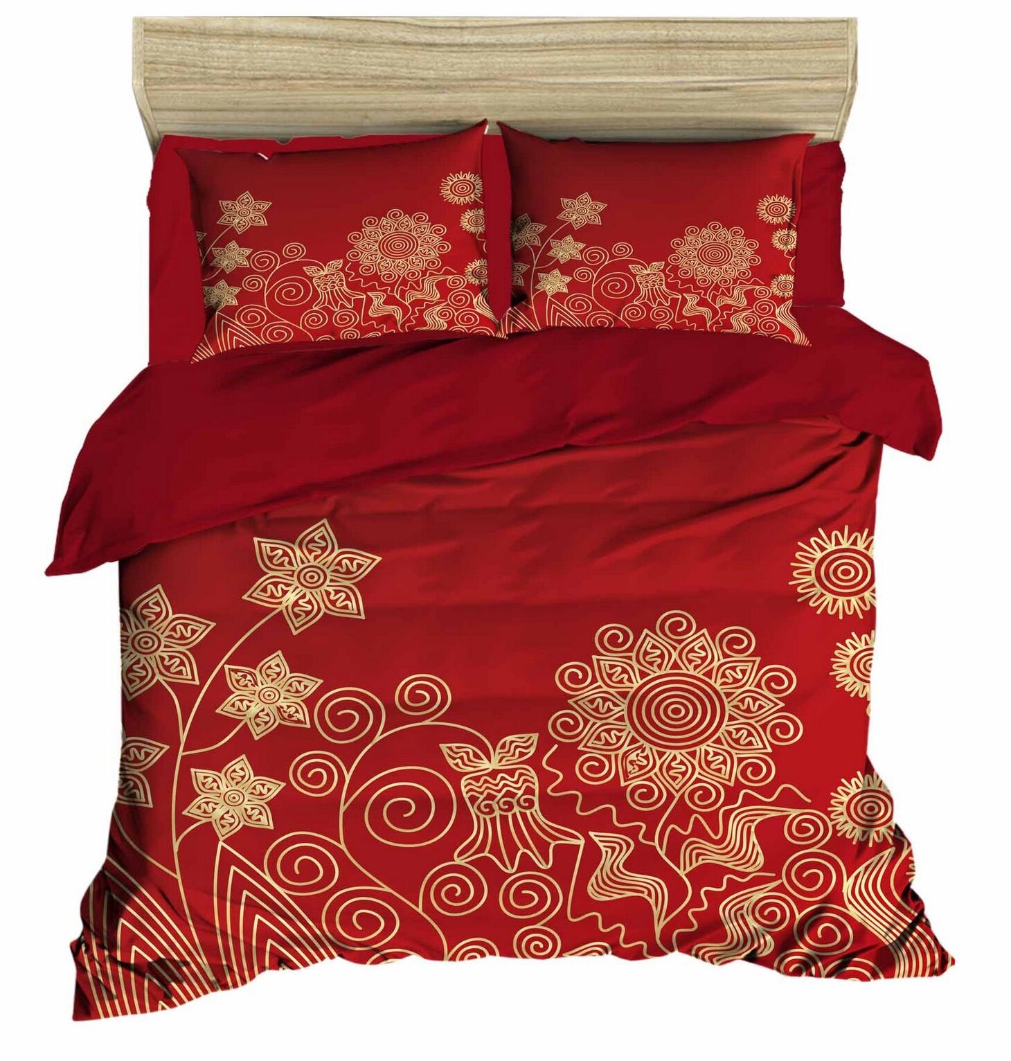 Kalėdinis patalynės užvalkalų komplektas Mijolnir 178PRL1315, aukso/raudonas, 160 x 220 cm