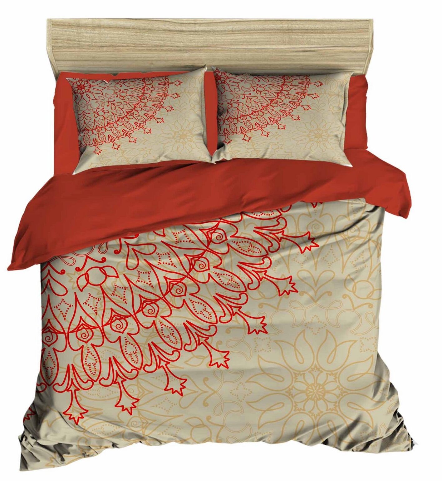 Kalėdinis patalynės užvalkalų komplektas Mijolnir 178PRL2084, aukso/raudona/smėlio, 200 x 220 cm