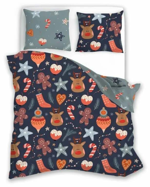 Kalėdinis patalynės užvalkalų komplektas PIO-03, mėlynas/oranžinis/pilkas, 160 x 200 cm | Interjeras, baldai, tekstilė | Senukai.lt | 2