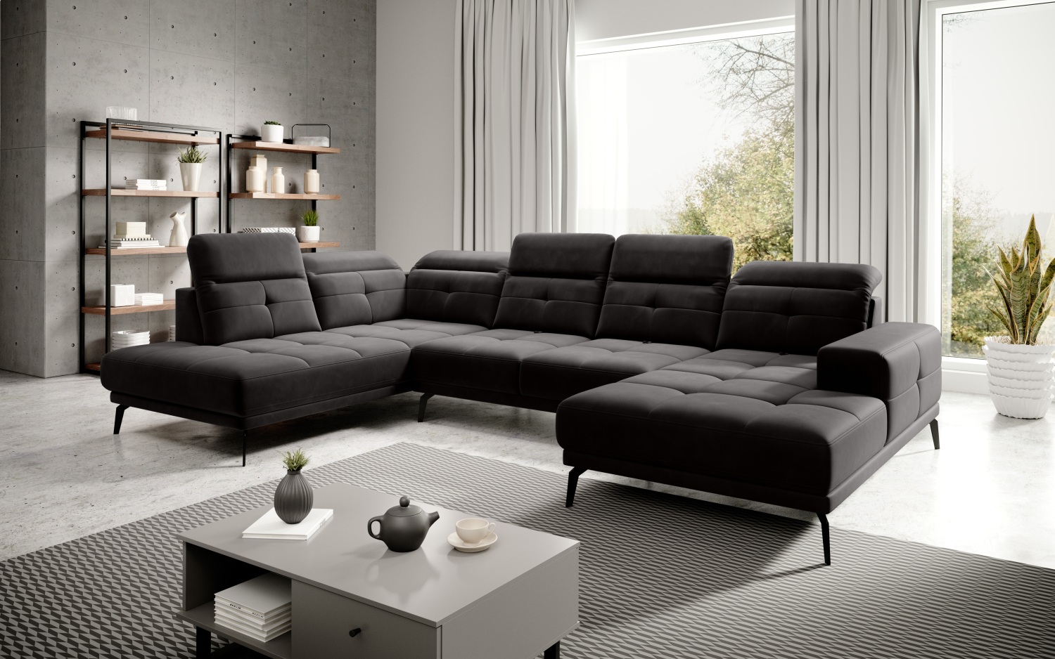 Kampinė sofa Inferne Aura 04, pilka, dešininė, 297 x 210 cm x 107 cm