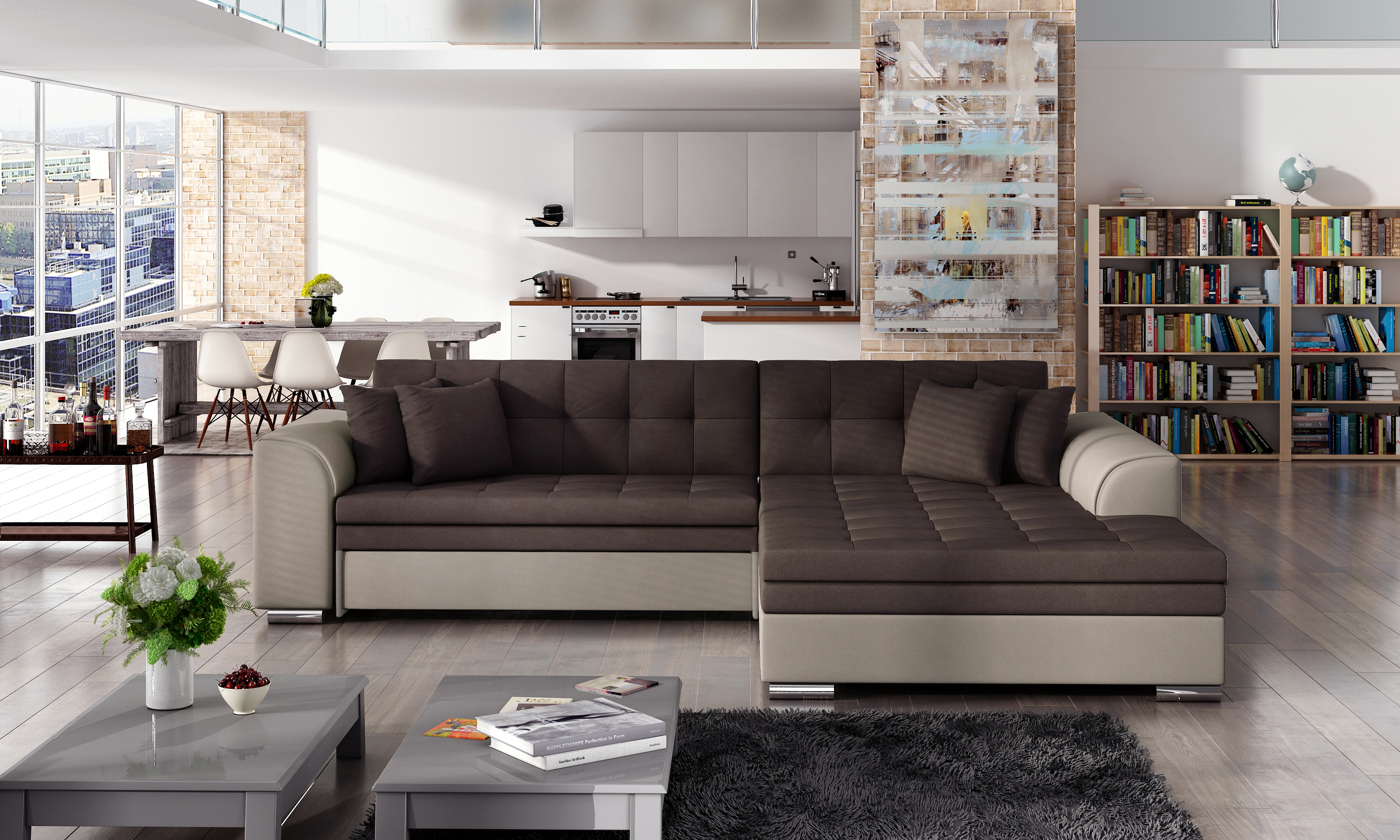 Sorento yra stilingas, daugiafunkcis kampinis sofa su stabiliu L formos rėmu, kuris tarnaus jums kaip baldas daugelį metų. Sofa, kurios matmenys yra 295 x 195 x 80 cm, puikiai tinka ne tik dienos poilsio vietai, bet ir kaip pagrindinis gyvenamojo kambario dekoro elementas. Dėl delfinų tipo mechanizmo Sorento kampinis sofa taip pat tinka nakties poilsiui. Miegojimo paviršius, kurio matmenys yra 210 x 126 cm, užtikrina ilgą miegą ir visišką atsipalaidavimą. Maksimalų komfortą garantuoja gofruotų spyruoklių ir T30 putplasčio, iš kurio pagaminta sėdynė, derinys. Renkantis Sorento kampinę sofą, verta atkreipti dėmesį į jos neįprastą stilių, taip pat į: kontūruotą atlošą, suapvalintus porankius ir stilingą quiltavimo, kuris suteikia charakterį. Sorento yra stilius, komfortas ir klasė. Verta turėti tokį baldą savo bute.