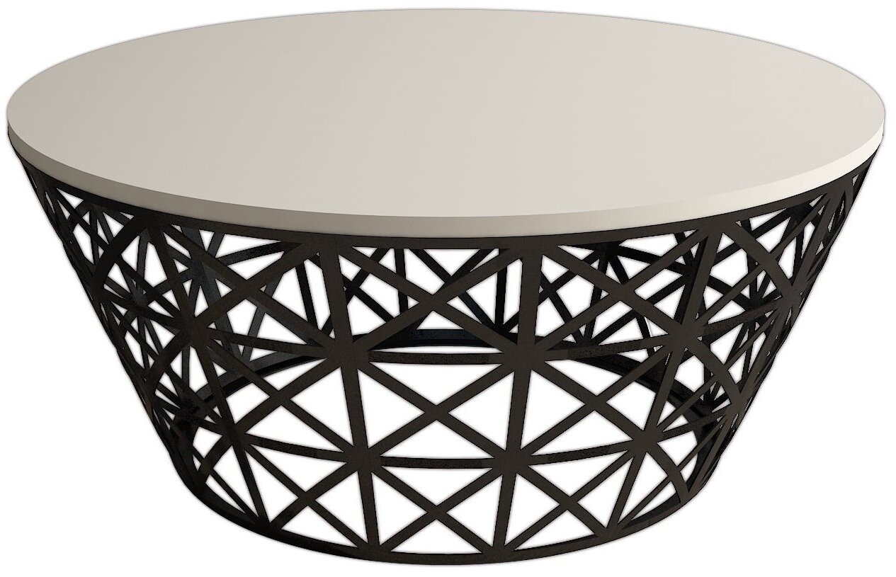 Kavos staliukas Kalune Design Stil Metal Ferforje, juoda/kreminė, 90 cm x 90 cm x 38 cm