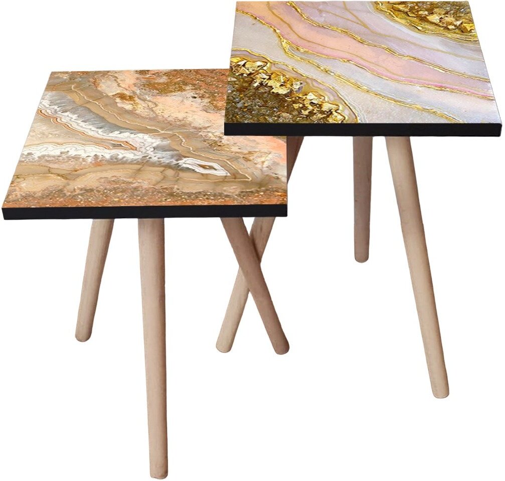 Kavos staliukų komplektas Kalune Design 2SHP423, aukso/baltas/rožinis, 35 cm x 35 cm x 47 cm | Interjeras, baldai, tekstilė | Senukai.lt | 0