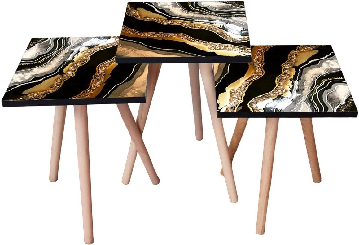 Kavos staliukas Kalune Design Lorenz, juoda/riešuto, 85 cm x 85 cm x 35 cm