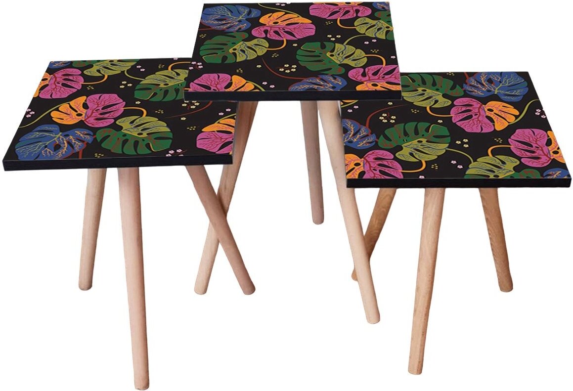 Kavos staliukų komplektas Kalune Design 3SHP141, žalias/rožinis/įvairių spalvų, 35 cm x 35 cm x 52 cm | Interjeras, baldai, tekstilė | Senukai.lt | 1