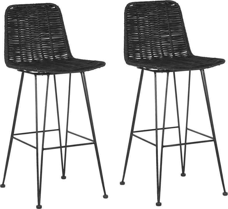 Baro kėdė Beliani Bisbee, blizgi, juoda, 49 cm x 50 cm x 110 cm, 2 vnt.
