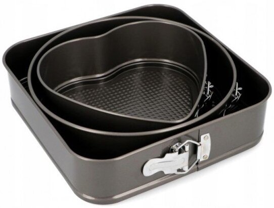 Šios kvadrato, skritulio bei širdelės formos kepimo formos pagamintos iš labai kokybiško plieno su nepridegančia danga, todėl galėsite mėgautis skaniais pyragais, tortais be jokių papildomų rūpesčių. Lengvai nuvalomas paviršius.