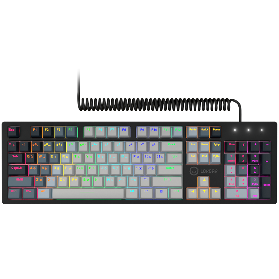 Mechaninė klaviatūra LORGAR Azar 514 yra idealus pasirinkimas aistringiems žaidėjams, kurie nori sujungti našumą su moderniu stiliumi. Dėl įspūdingo RGB apšvietimo klaviatūra ne tik puikiai atrodo, bet ir leidžia visiškai personalizuoti žaidimų erdvę.