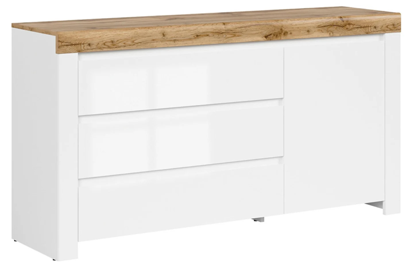 Komoda Holten S440-KOM1D3S-BI/DWO/BIP, ąžuolo/balta, 156 cm x 42 cm x 83.5 cm