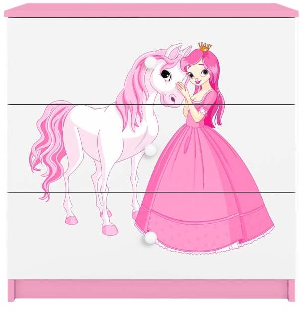 Komoda Kocot Kids Babydreams Princess & Horse, balta/rožinė, 41 cm x 80 cm x 80.5 cm | Interjeras, baldai, tekstilė | Senukai.lt | 0