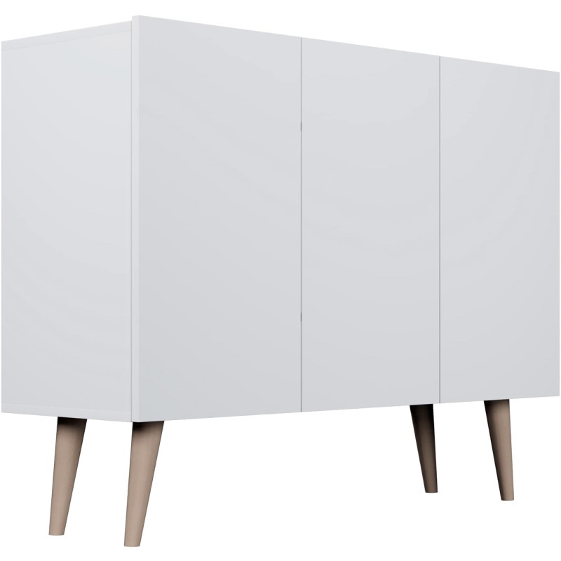 Komoda turi tris laikymo skyrius su durelėmis. Spintelėse yra lentynos su trimis skirtingais reguliavimo lygiais (kas 6,4 cm). Centrines dureles galima montuoti dešinėje arba kairėje pusėje. Komoda turi penkias buko medienos kojeles su varžtine fiksacija ir lengvai montuojamus vyrius. Durų atidarymo kampas - 110 laipsnių.