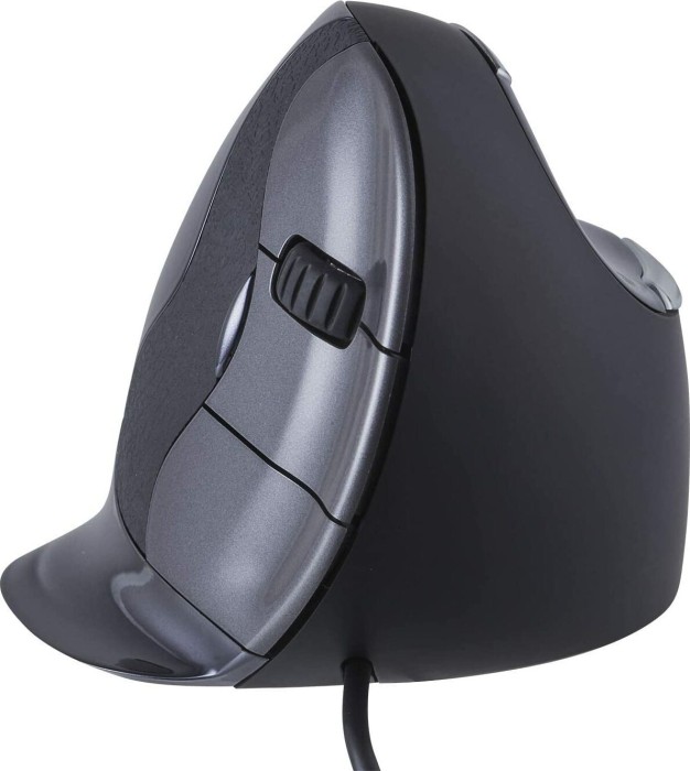 Su Evoluent's VerticalMouse D, pirštų galiukai remiasi į mygtukus sekliame griove. Ši patentuota naujovė tvirtai laiko pelę jūsų rankoje ir daro judesius daug tikslesnius. Ergonomiška forma palaiko ranką rankos paspaudimo padėtyje, užkertant kelią riešo skausmui ir jį mažinant. Papildomas platus kraštas išilgai apatinio krašto neleidžia paskutiniam pirštui trinti į stalą. Protingai išdėstyti nykščio mygtukai yra lengvai pasiekiami tiek viršuje, tiek apačioje išlenkto nykščio atramos. VerticalMouse D mygtukus galima sukonfigūruoti taip, kad jie atliktų beveik bet kurią pageidaujamą funkciją - pavyzdžiui, kopijuoti ar įklijuoti - su mažiau paspaudimų ir pelės judesių. Jautrumas smarkiai skiriasi kiekvienu laipsniu, reaguojant į greitį, kaip riedėti pelės ratuką - nuo lėto ir tikslaus iki hiper greičio ilgiems puslapiams apversti. Ekrano ryškumą taip pat galima lengvai ir greitai keisti naudojant pelės ratuką.