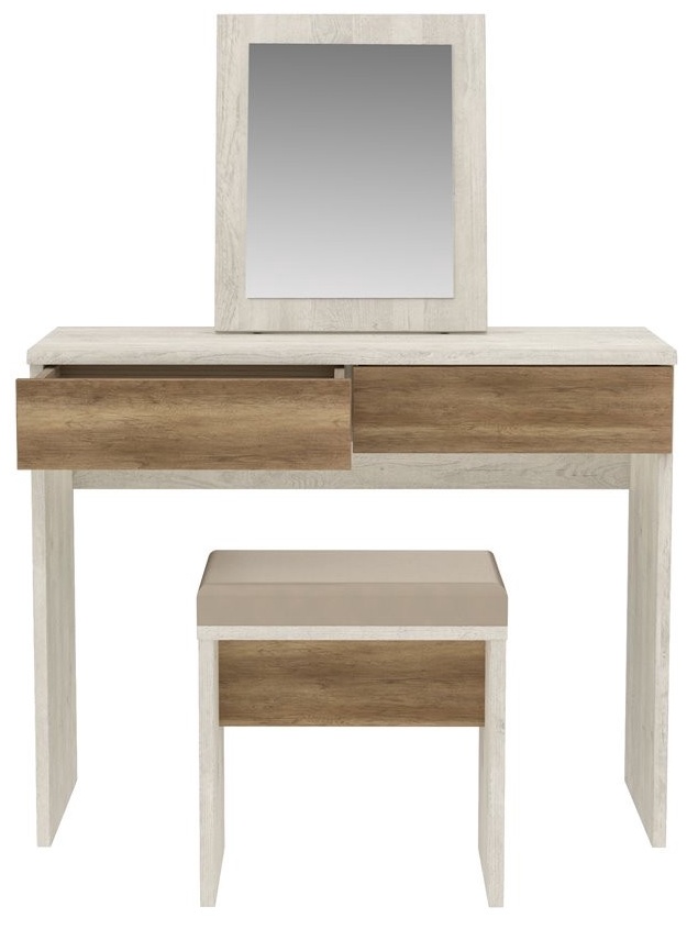 Pasilikite tą mažą savo kambario kampą sau ir palikite jį VERONA tualetiniam staliukui. Viename papildomame balde turėsite vietą, kur laikysite tai, ko jums reikia kambaryje, ir praktišką veidrodį, kad patikrintumėte, ar viskas tobula, prieš išeinant iš namų. Jame yra 2 praktiški stalčiai, kad galėtumėte sutvarkyti kosmetikos ir grožio produktus, taip pat 1 veidrodis ir sėdynė. VERONA tualetinis staliukas bus jūsų geriausias sąjungininkas, kad visada atrodytumėte spinduliuojančiai, ir suteiks klasikinį prisilietimą jūsų miegamojo dekorui.