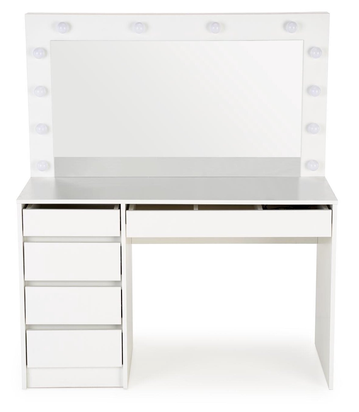Pagerinkite savo grožio rutiną su Hollywood XL Halmar Makiažo Staliuku — elegantišku ir erdviu kosmetiniu staliuku, sukurtu profesionaliam žavesiui įnešti į jūsų namus. Šis staliukas su savo švaria balta apdaila ir ikonišku veidrodžiu, apšviestu švytinčiomis lemputėmis, siūlo tiek stilių, tiek funkcionalumą makiažo mėgėjams ir grožio profesionalams.