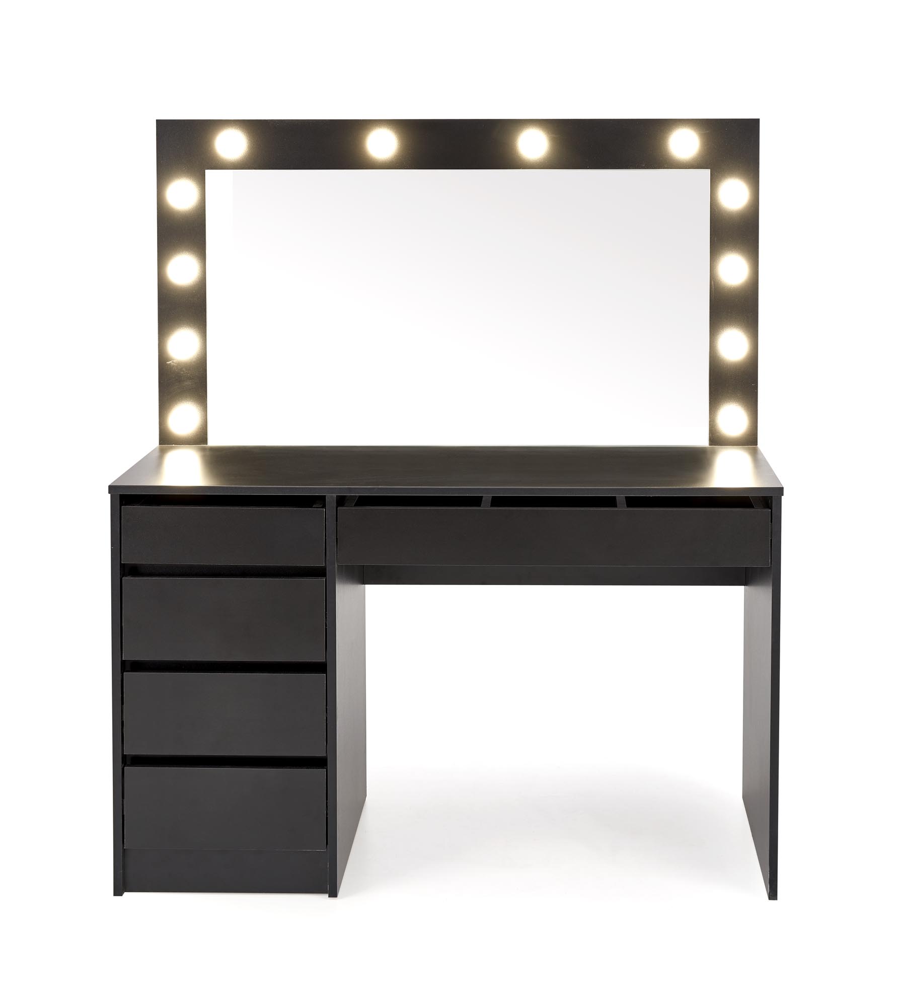Ženkite į dėmesio centrą su elegantišku juodos spalvos Holivudo XL Halmar makiažo staliuku – tai drąsus ir funkcionalus bet kurios grožio erdvės akcentas. Šis kosmetinis staliukas, sukurtas profesionaliai ir patogiai kasdieniam naudojimui, pasižymi erdviu išplanavimu ir žavingu veidrodžiu, apsuptu ryškių lempučių, kad apšvietimas būtų nepriekaištingas.