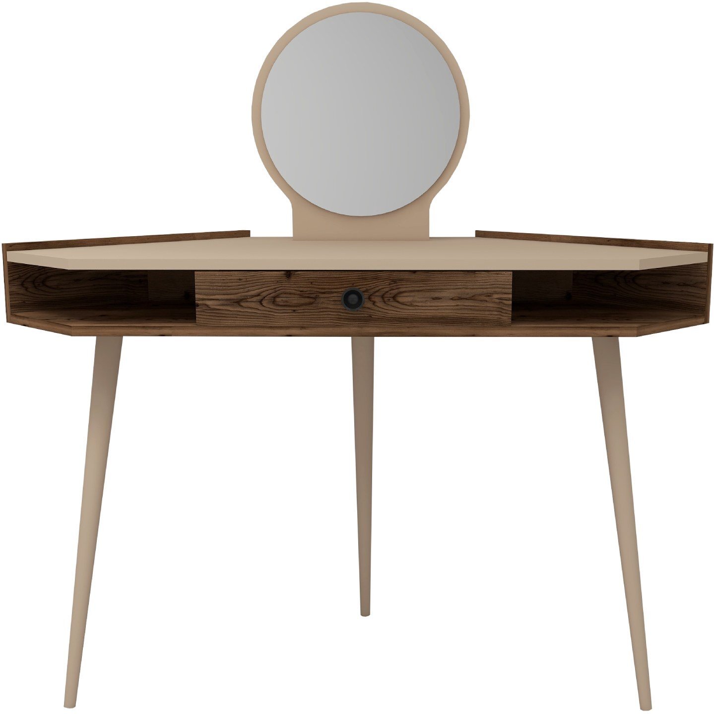 Kosmetinis staliukas Kalune Design Lopez 550ARN2737, riešuto/smėlio, 130.8 cm x 55 cm x 85.2 cm, su veidrodžiu | Interjeras, baldai, tekstilė | Senukai.lt | 1