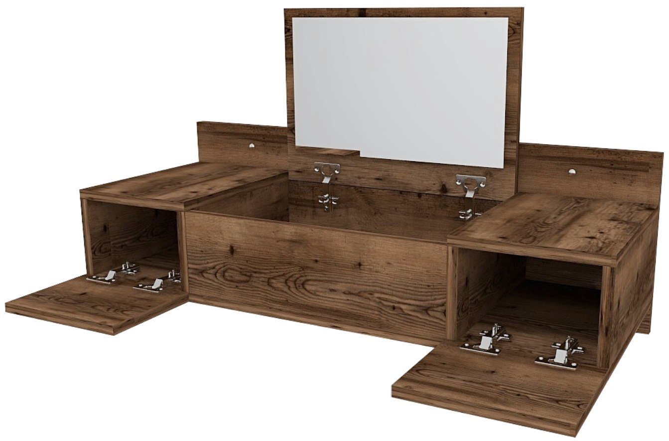 Šis makiažo staliukas pagamintas iš 100 % melaminu dengtos medienos drožlių plokštės, kurios storis 18 mm.