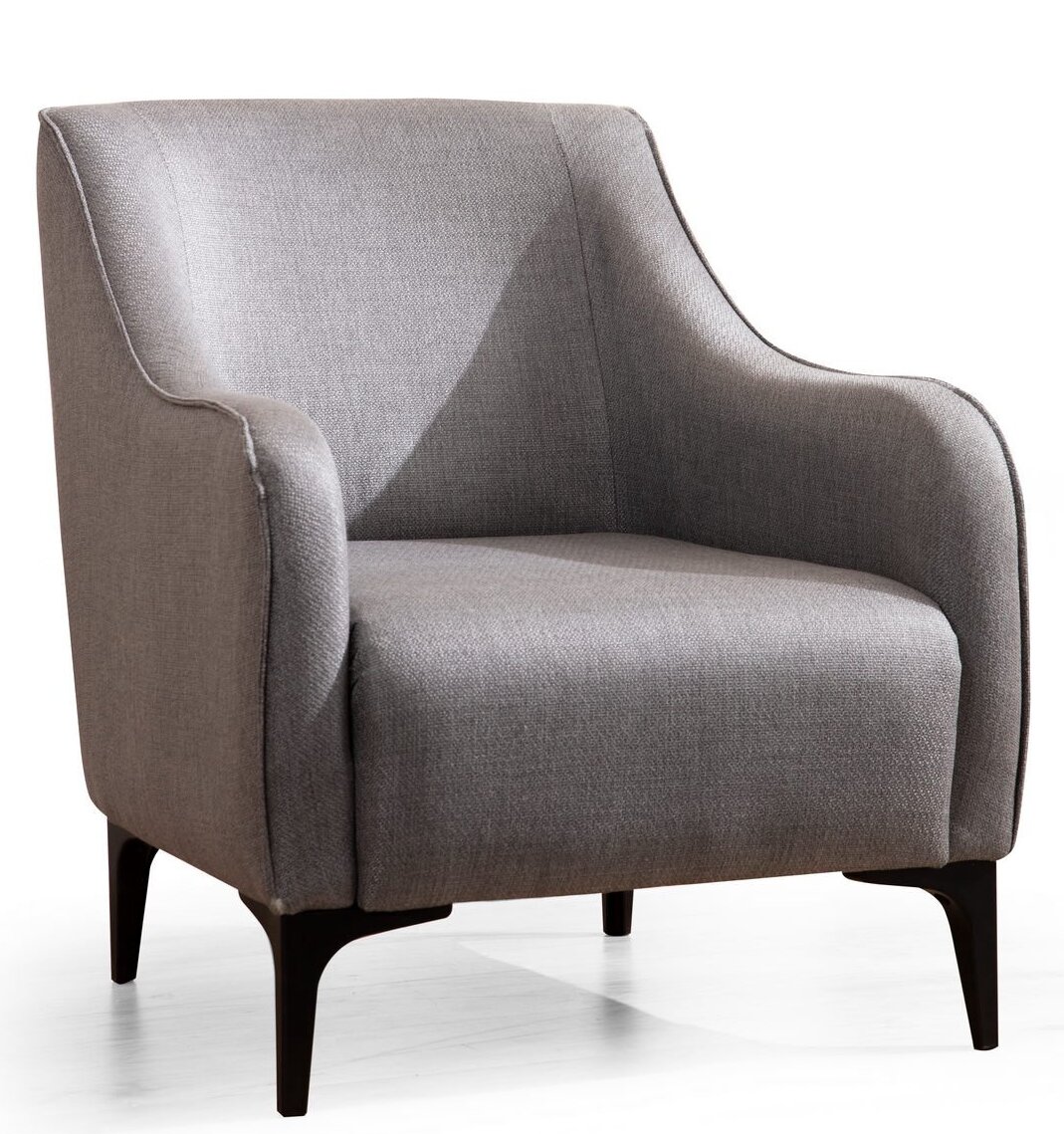 Krėslas paremtas juodomis kieto plastiko kojomis, kurių kojų aukštis 15 cm. Audinys valomas sausuoju būdu.