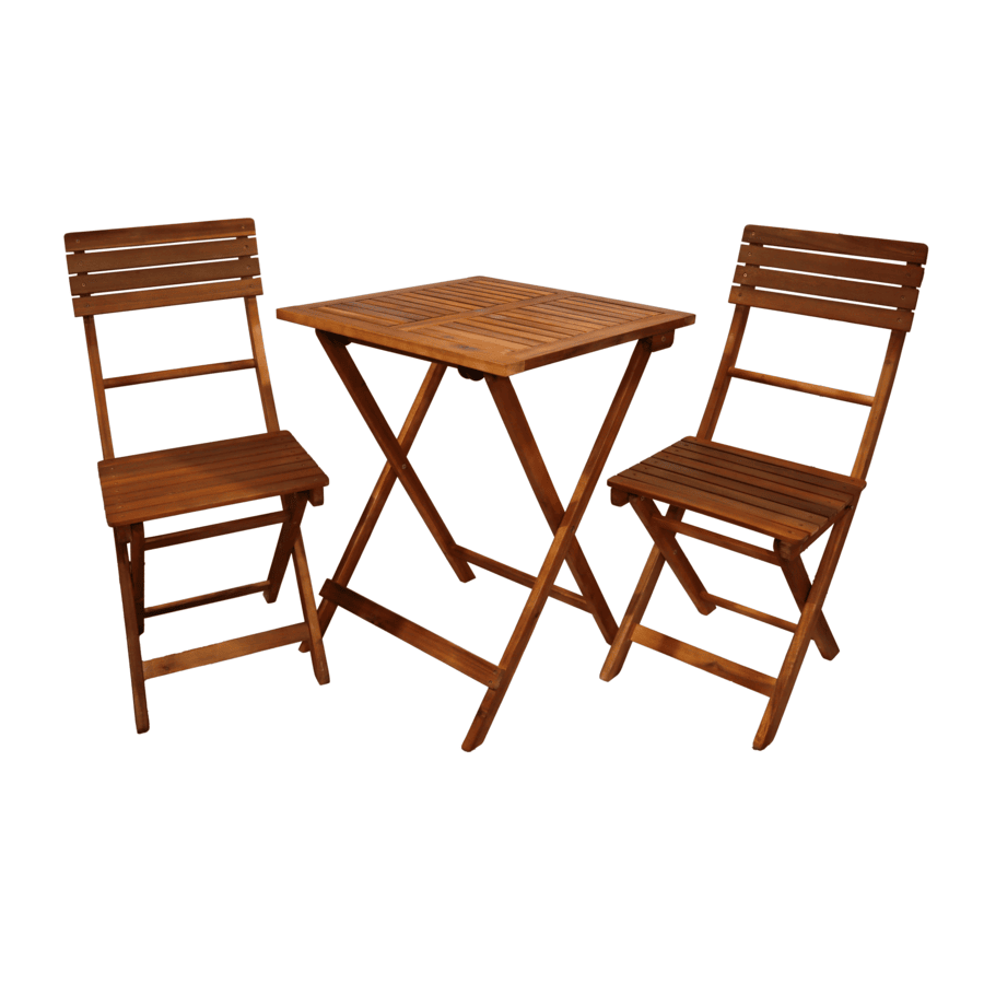 Šį kompaktišką ir stilingą sodo komplektą sudaro stalas ir dvi kėdės, puikiai tinkantys poilsiui lauke. Jis sujungia praktiškumą su natūralia estetika.