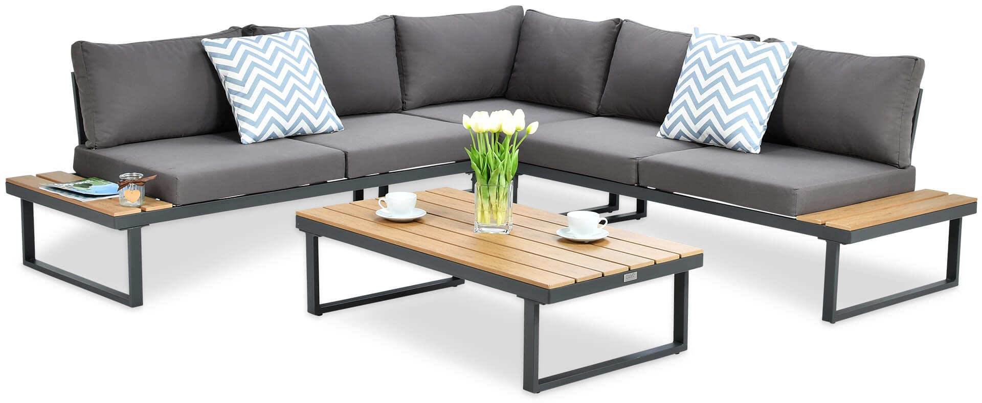 1 kampinės sofos segmentas, 1 kavos staliukas, 2 sofos, Pagalvės