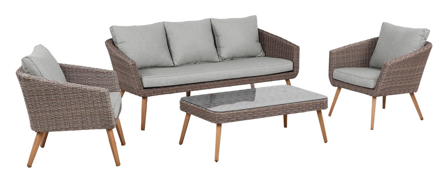 LAUKO BALDŲ KOMPLEKTAS HOME4YOU NORWAY 77687, PILKAS/ŠVIESIAI RUDA, 5 VIETŲ