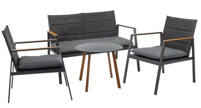 A comfortable set for the garden and the terraceThe sofa and armchairs are equipped with armrests that relieve the pressure on the shoulders, ensuring the comfort of sitting. Optimally profiled seats combined with soft cushions are perfect for everyday rest. A compact coffee table will come in handy during an afternoon coffee break.