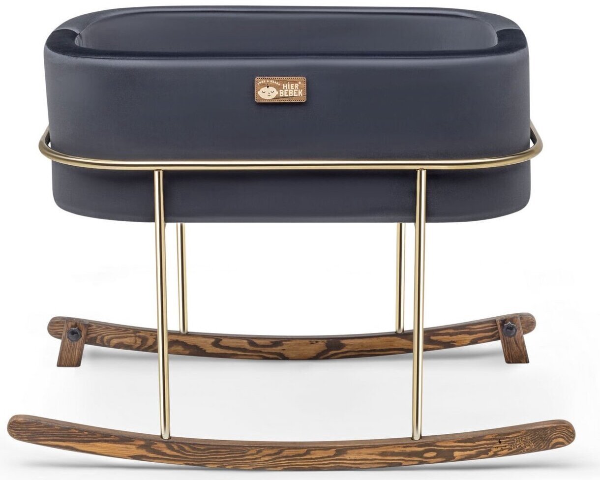 Lopšys kūdikiams viengulė Kalune Design Hier Cradle, aukso/juoda/medžio, be patalynės dėžės, su čiužiniu