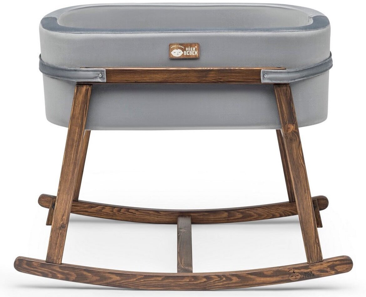 Lopšys kūdikiams viengulė Kalune Design Hier Cradle, pilka/riešuto, be patalynės dėžės, su čiužiniu