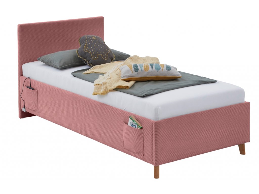 Stilinga "Cool" lova su velveto apmušalais - puikus pasirinkimas vaikų ir studentų kambariams. Jos šonuose rasite erdvias kišenes, kuriose tilps viskas, ką reikia turėti po ranka prieš miegą: knyga, žurnalas, žaidimų konsolė ir nedideli žaislai ar skaitymo akiniai.