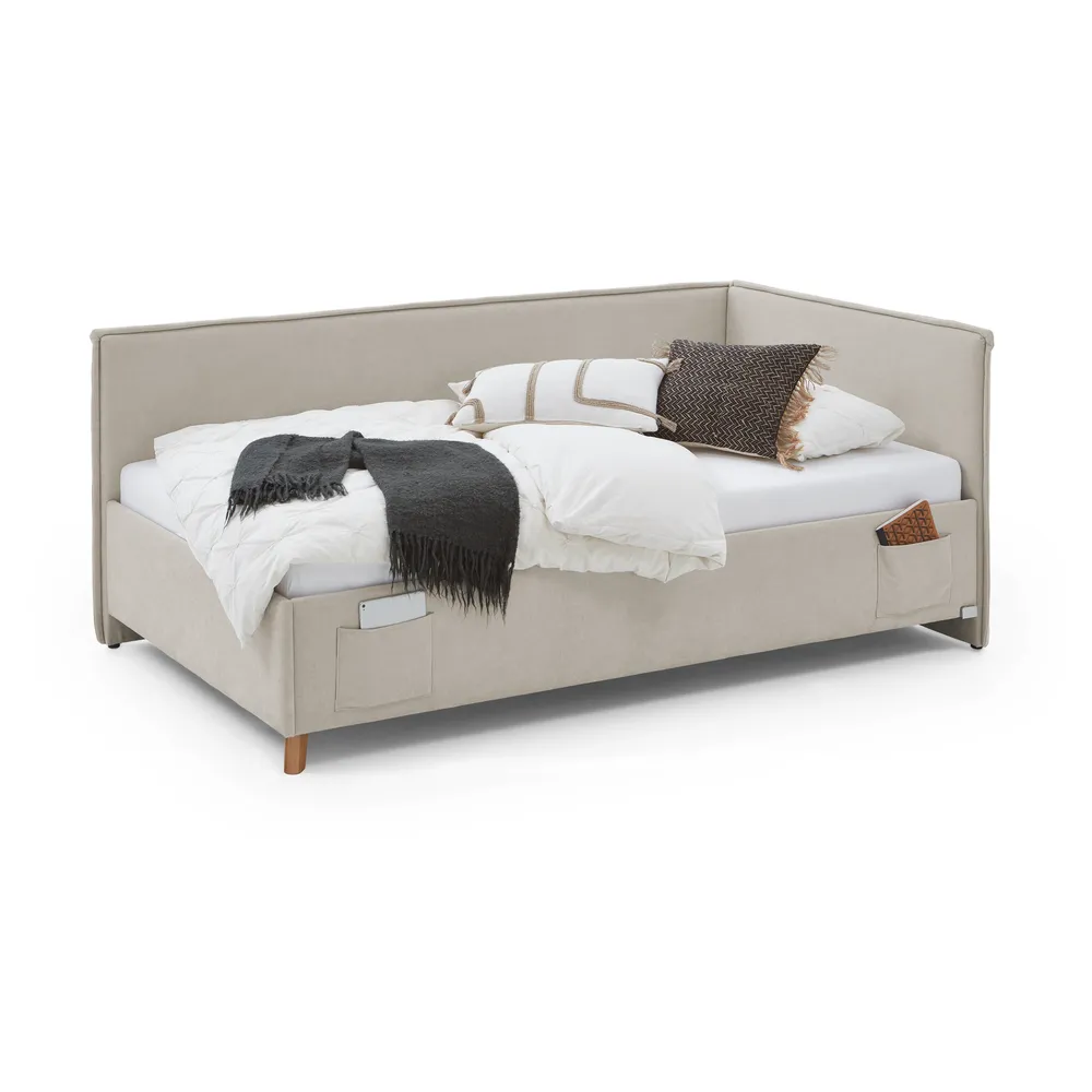 Lovos rėmas dvigulė Kalune Design Luna, 140 x 190 cm, smėlio, be čiužinio