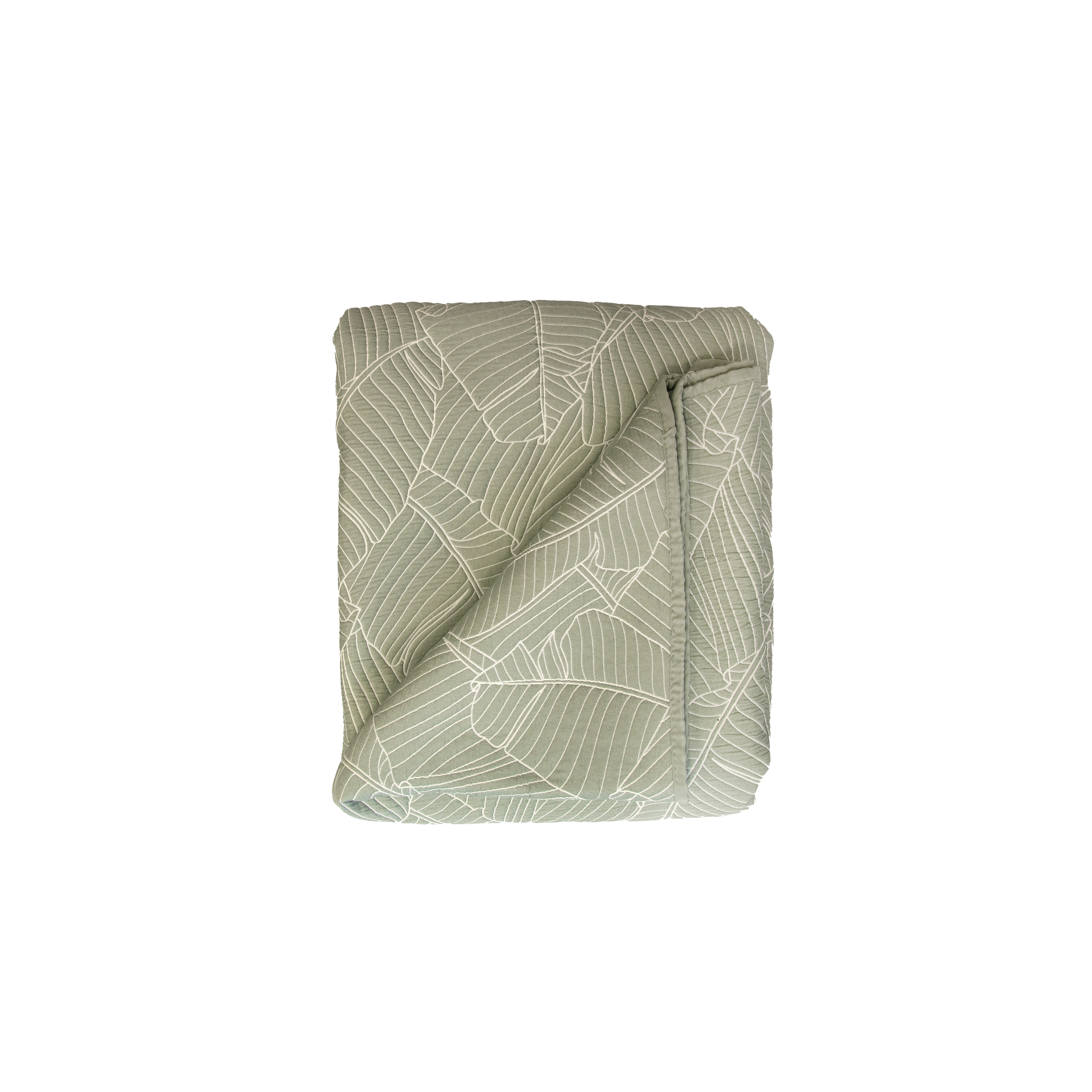 Žalsvos ir baltos spalvos lovos užtiesalas suteiks erdvei gaivos ir sukurs raminančią aplinką, padėsiančią atsipalaiduoti po sunkios dienos.