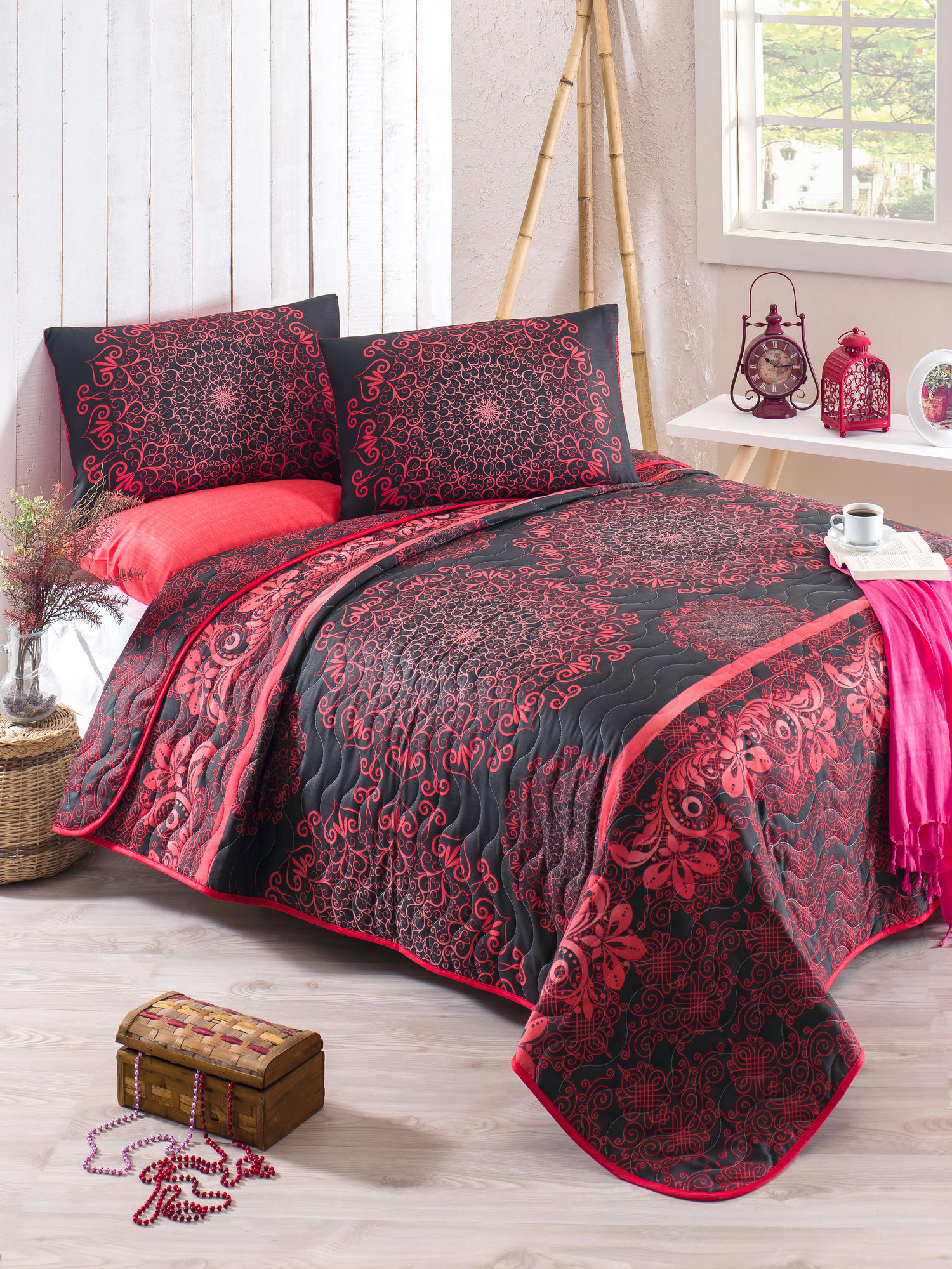 Lovatiesė Mijolnir Single Set Þehri-Ala, juoda/raudona, 160 cm x 220 cm | Interjeras, baldai, tekstilė | Senukai.lt | 0