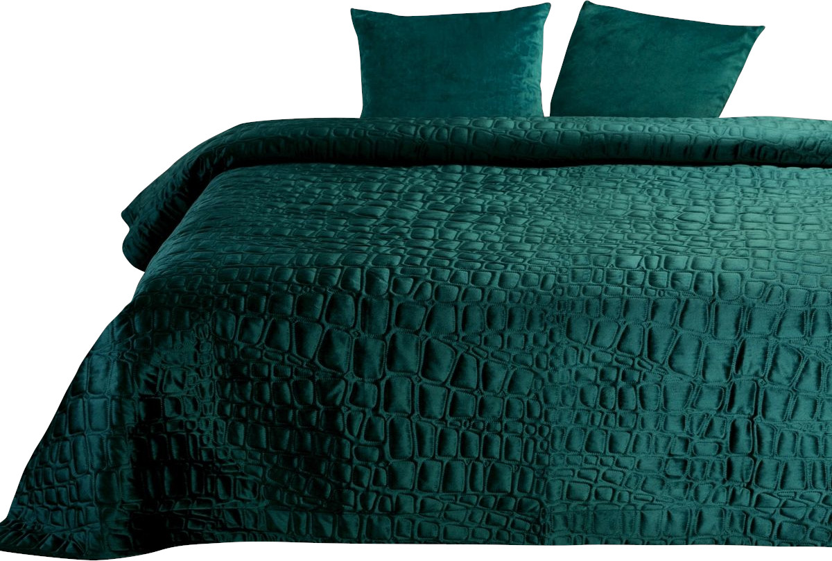 A quilted bedspread with a fashionable crocodile skin motif will add a fashionable character to the bedroom. The soft velvet from which the top of the bedspread is made is a noble and elegant fabric with a slight shine, while the bottom is made of matte microfiber, which prevents the bedspread from slipping off the bedding. The elastic filling placed between two fabrics makes the bedspread softly hug the bed, ensuring an aesthetic appearance of the bedroom.