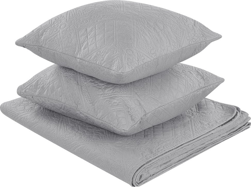 Ši nuostabi antklodė bus puikus bet kurios lovos akcentas. Pagaminta iš patvaraus ir lengvai valomo poliesterio, neutralios spalvos dėka ji lengvai įsilies į bet kokį interjerą. Antklodė papuošta subtiliu reljefiniu raštu, kurio geometrinės formos ir gėlių motyvai puikiai papildys tiek modernų, tiek tradicinį stilių interjerą. Komplekte yra dvi dekoratyvinės pagalvės su minkštu užpildu patogiam naudojimui.