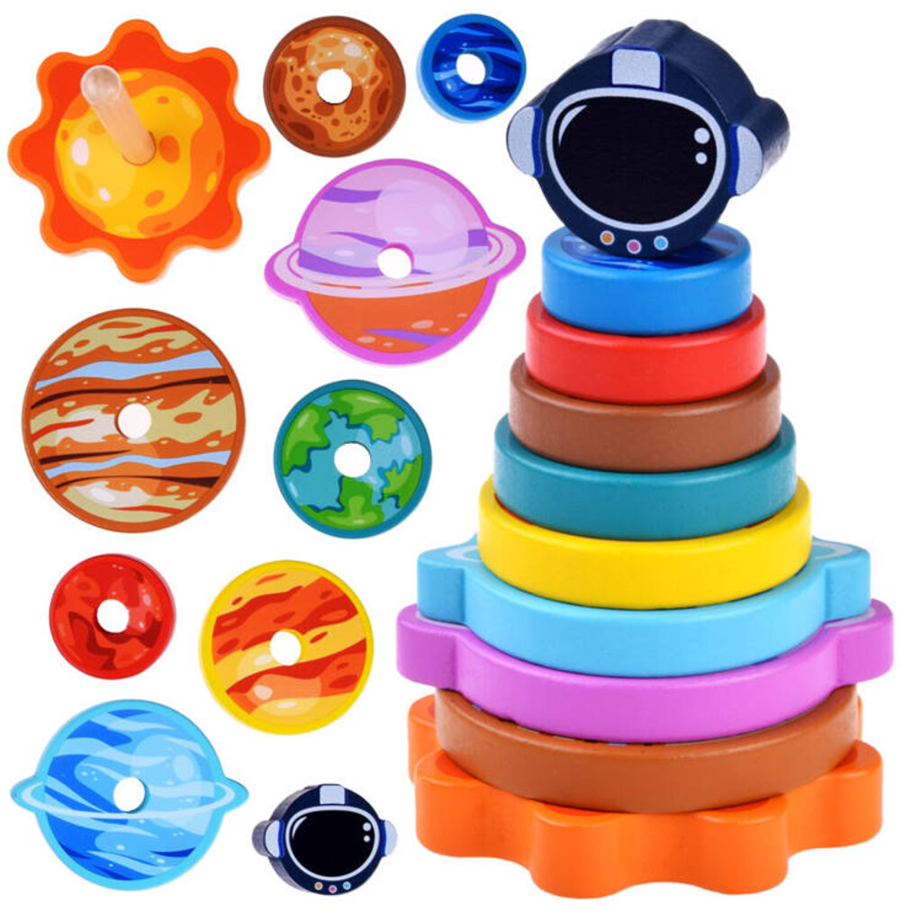 Lavinamoji medinė piramidė – žaislas, kuris gali lavinti vaiko rankinius įgūdžius. Mažylio užduotis yra sudėlioti diskus ant pagrindo – nuo didžiausio iki mažiausio. Piramidės galas yra astronauto šalmo formos elementas. Visa tai laikoma kosminiu stiliumi, diskai yra Saulės sistemos planetos, o pagrindas yra Saulė.