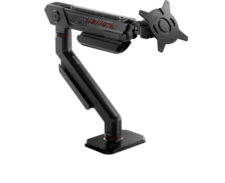 ROG Ergo Monitoriaus Laikiklis AAS01 yra monitoriaus laikiklis, sukurtas patogesnei ir tvarkingesnei žaidimų aplinkai sukurti. Jame yra kabelių valdymo kanalai, skirti tvarkingai darbo vietai.